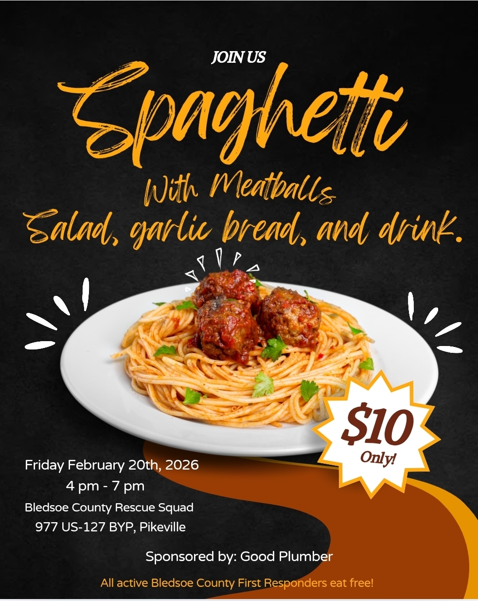 $10.00 Spaghetti Dinner Friday February 20th, 2026 4 pm - 7 pm